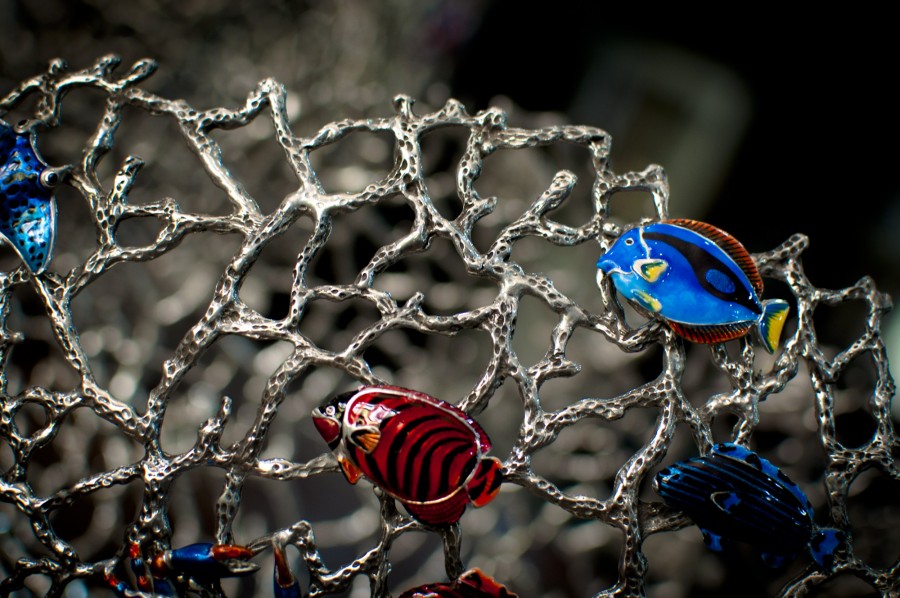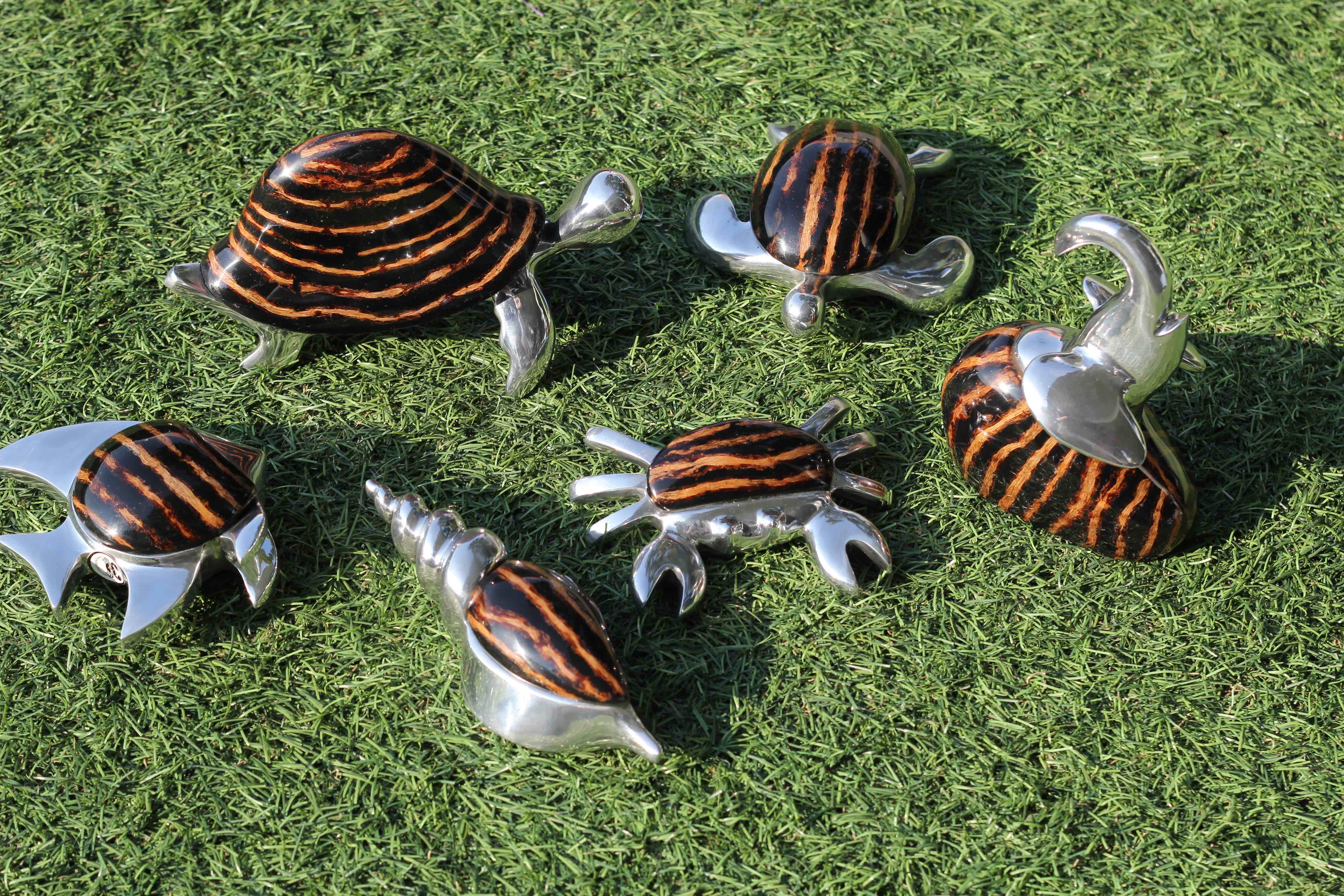Eye-catching and contemporary collection of tropical creatures in unique combination of stainless steel and resin.